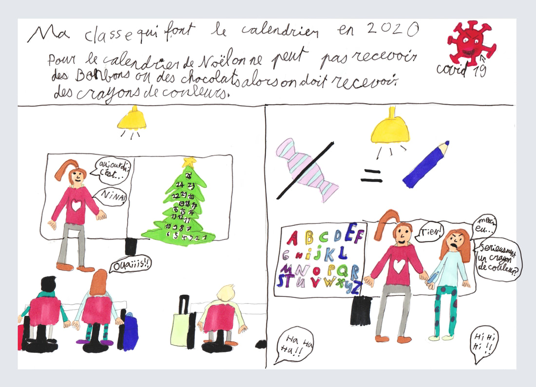 Voici une galerie de tous les beaux dessins reçus dans le cadre de notre concours d’illustration de la carte de vœux de fin d’année de